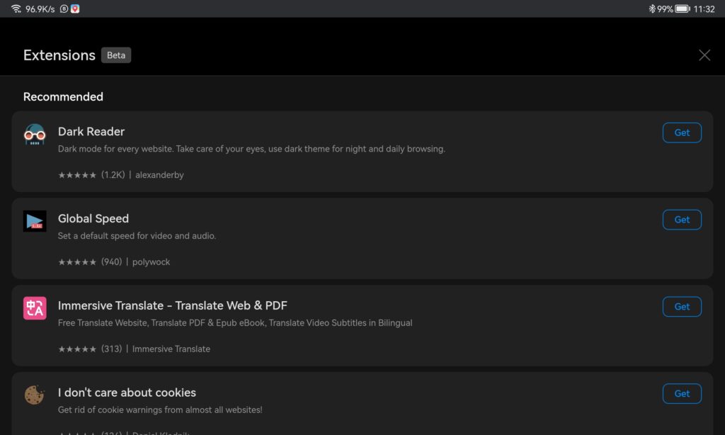 Contohnya seperti pada gambar di atas, pada Microsoft Edge 123 yang saya install di Huawei MatePad 10.4 hanya bisa diinstall dua extension yaitu Dark Reader dan Global Speed. Tapi tahukah kamu kalau sebenarnya kita bisa menambahkan lebih banyak ekstensi lagi guys?