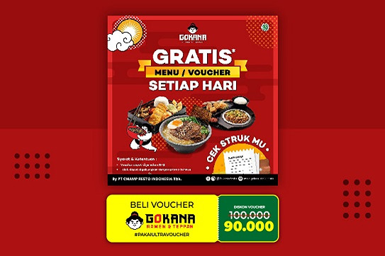 Hingga akhir tahun hingga 31 Desember 2023, Gokana memberikan harga spesial untuk para penggemar menu Gokana. Siapa pun yang ingin mencoba menu Gokana bisa mendapatkan menu atau voucher setiap hari dengan pembelian Rp 100.000 atau lebih.